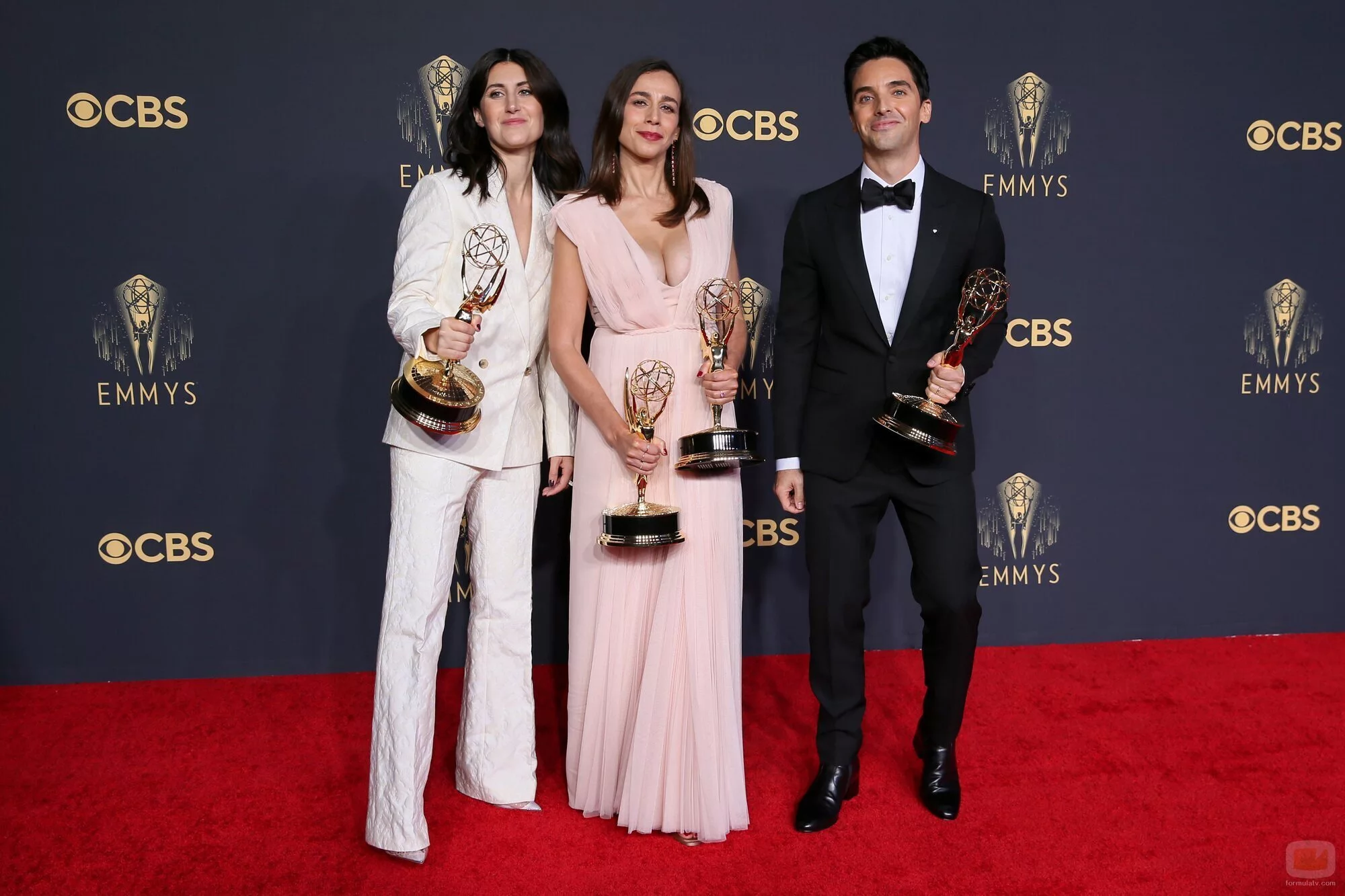 Jen Statsky, Lucia Aniello y Paul W. Downs posan con sus premios Emmy 2021 gracias a su trabajo como guionistas en 'Hacks'.
