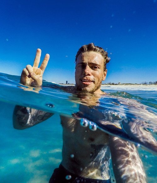 El medallista olímpico Gus Kenworthy, se hace un selfie en bañador en el mar. Es uno de los fichajes sorpresa de la noeva temporada de 'American Horror Story'.