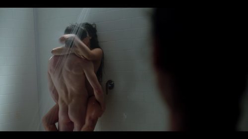 Guzmán, interpretado por Miguel Bernardeau y Lucrecia, interpretada por Danna Paola, manteniendo sexo completamente desnudos en las duchas de la serie 'Élite'.