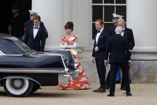 Helena Bonham Carter y Ben Daniels en el rodaje de 'The Crown'