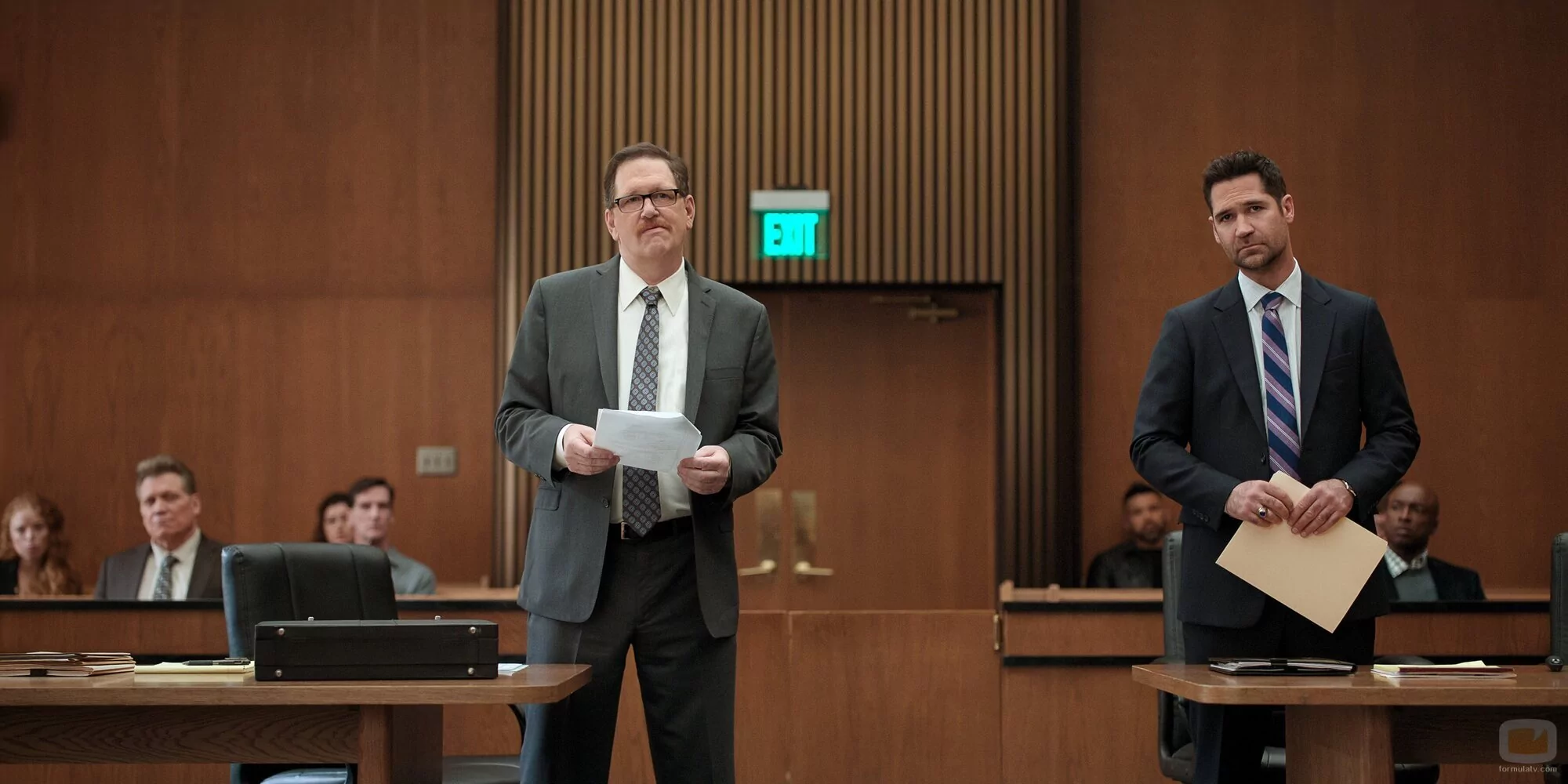 Manuel Garcia-Rulfo y Holt McCallany aparecen en una foto promocional del capítulo 'Imparable' de la serie 'El abogado del Lincoln'.