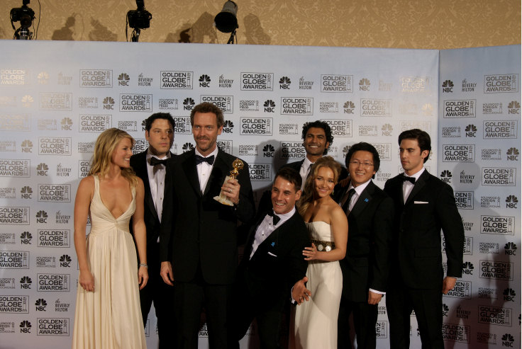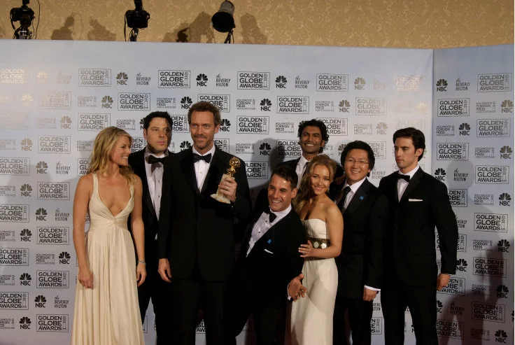 Hugh Laurie, mejor actor de serie dramática, posa con el reparto de 'Héroes'.