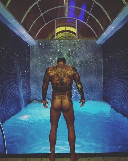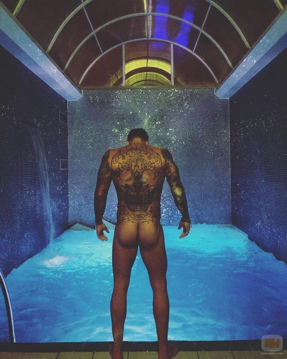 Hugo Paz, exconcursante de 'Mujeres y hombres y viceversa', posa desnudo en una piscina