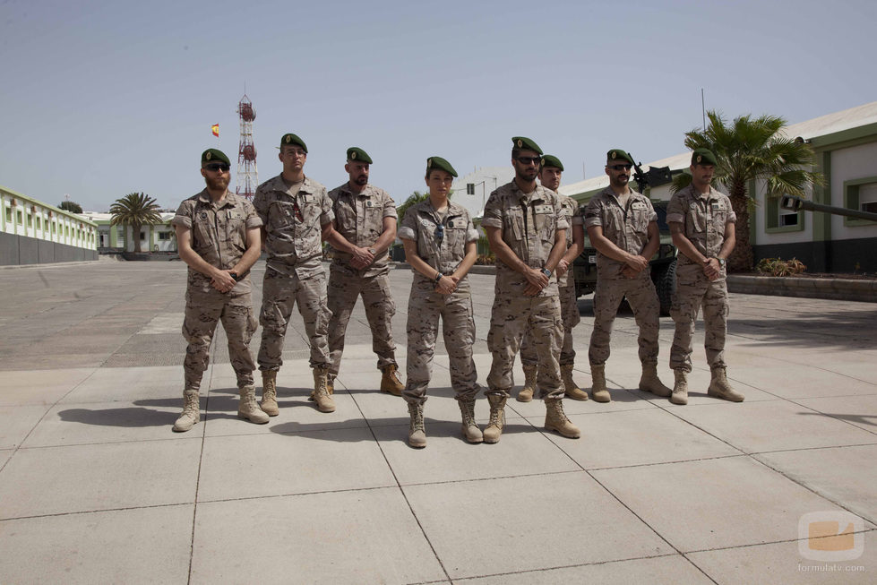 Eduardo Lloveras, Álvaro Cervantes, Hugo Silva, Sergio Torrico, Luis Fernández, Blanca Suárez, Antonio Velázquez y Andros Perugorría posan para las fotografías del rodaje de 'Los nuestros', nueva miniserie de Telecinco.