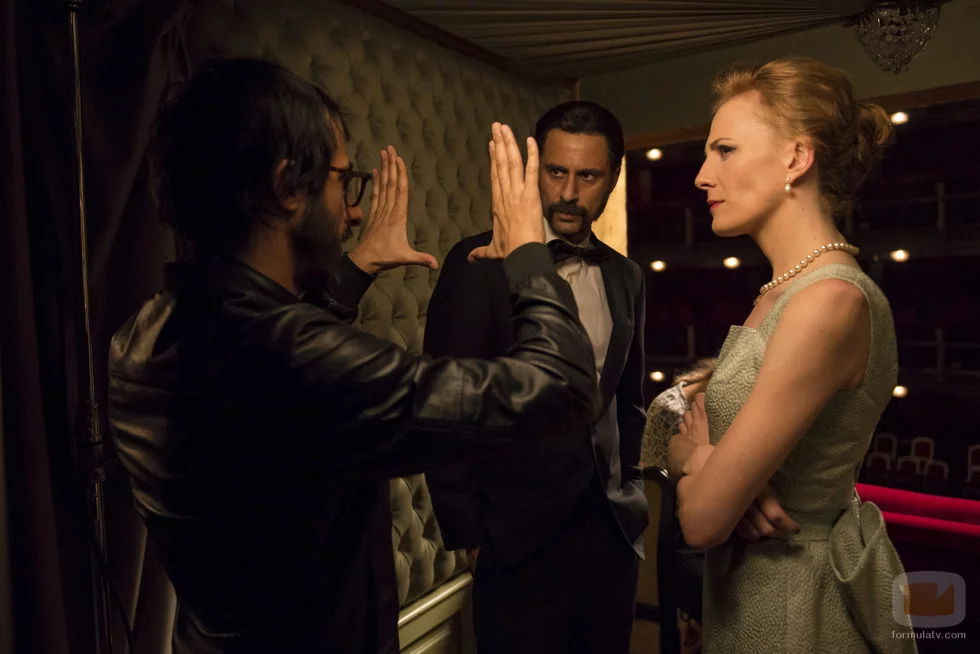Hugo Silva junto con Belén Fabra en el rodaje de la tercera temporada de 'El Ministerio del Tiempo', la producción de TVE en colaboración con Onza Entertainment y Cliffhanger.