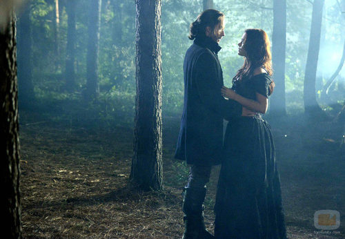 Tom Mison y Katia Winter juntos en el bosque en una escena de la quinta temporada de 'Sleepy Hollow'.