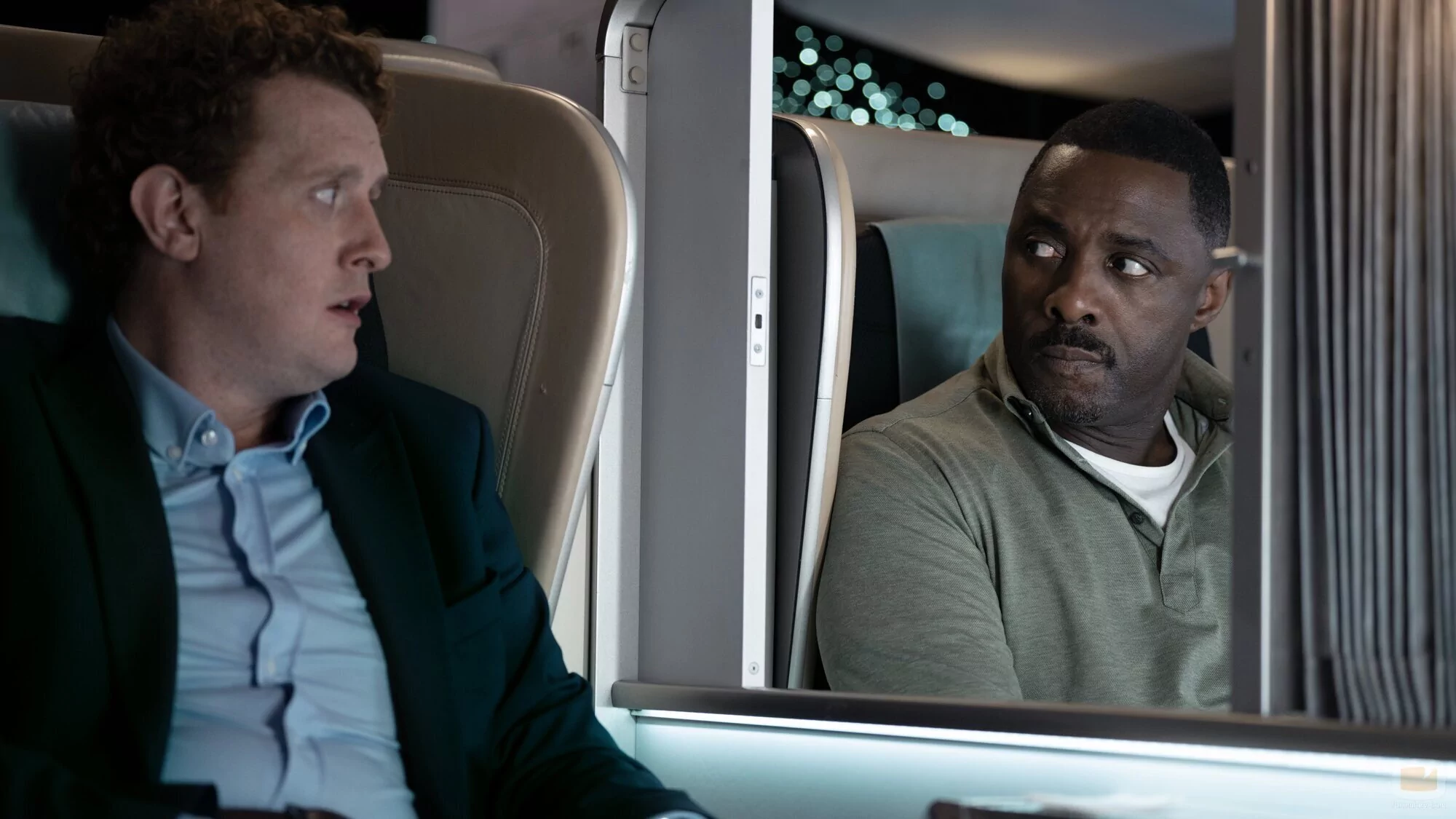 Idris Elba y Harry Michell aparecen en una foto del episodio 1x06 de la serie 'Secuestro en el aire', la serie de televisión de Apple TV+.
