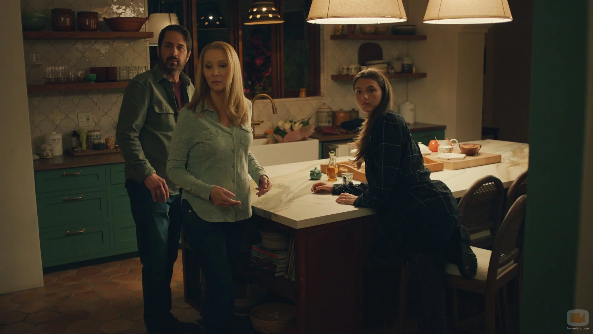 Lisa Kudrow, Chloe East y Ray Romano aparecen en una escena del episodio 'Vendida' de 'No Good Deed' con fecha de estreno el Jueves, 12 de Diciembre de 2024.