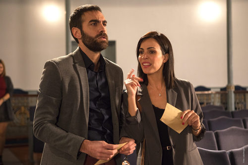 Iñaki (Jon Plazaola) y Gotzone (Nerea Garmendia) hablan con cara de extrañeza en una escena de la cuarta temporada de la serie de Antena 3.