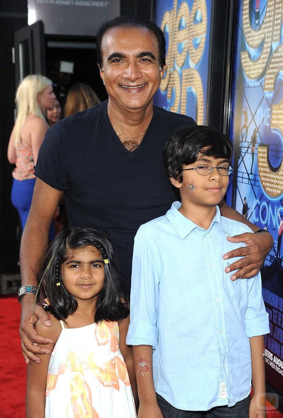 Iqbal Theba con sus hijos en la première de 'Glee'