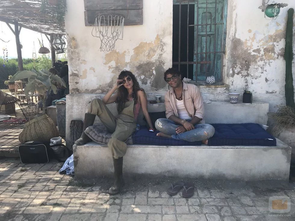 Irene Arcos y Paco Manzanedo en el rodaje de la serie 'El embarcadero'