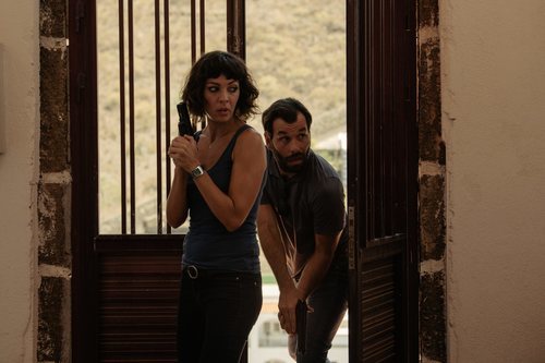 Iris Díaz interpreta a su personaje mientras sujeta una pistola con las dos manos en la nueva temporada de la serie de Movistar+.