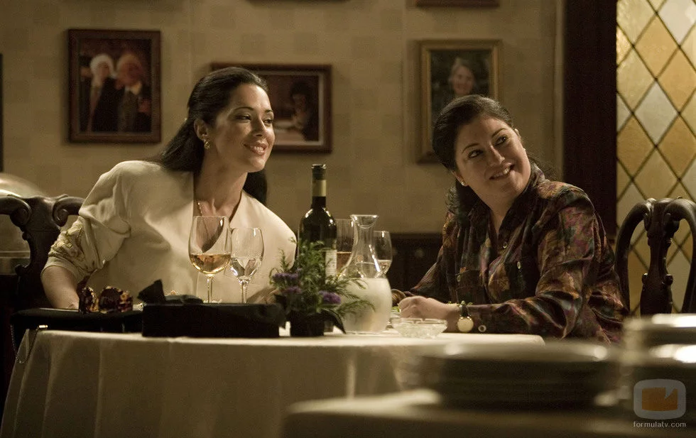 Las dos cantantes comen tranquilamente en un restaurante en una se las escenas de 'Mi Gitana'.