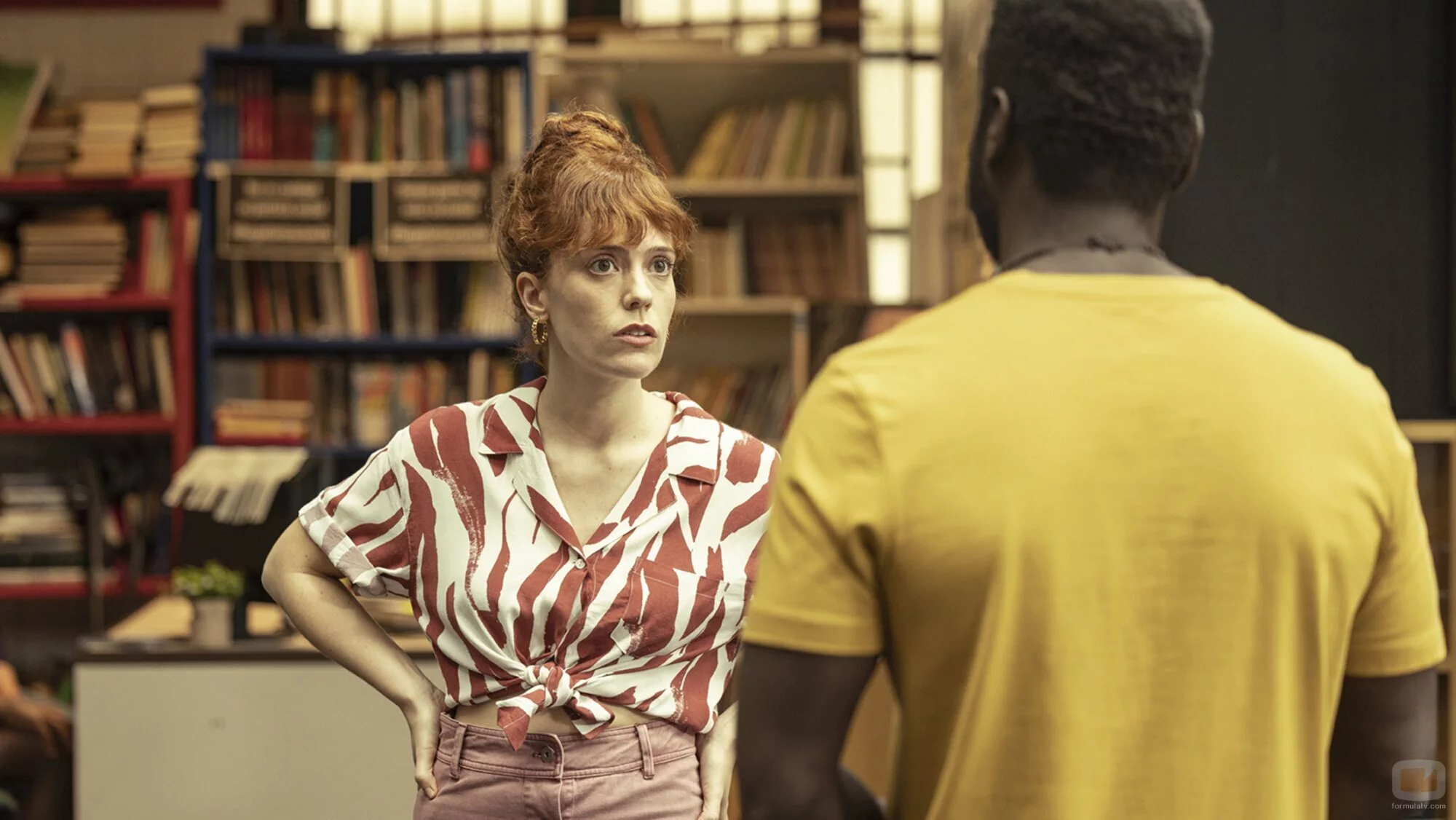 El personaje interpretado por la actriz navarra se muestra seria ante Mahamoud Touré en una de las escenas de la serie.