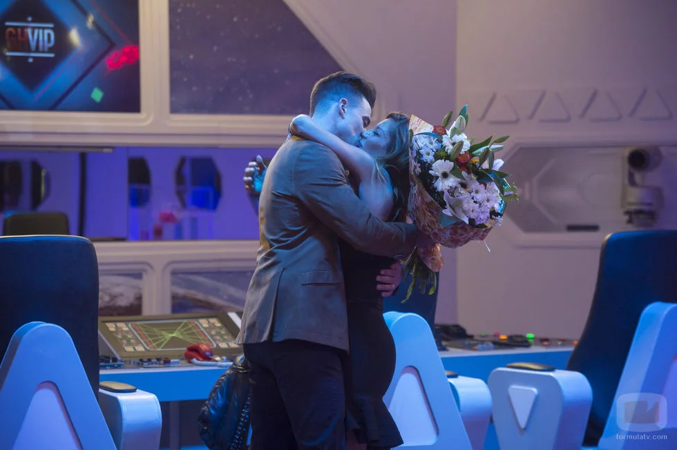 La modelo venezolana, Ivonne Reyes recibe el ramo de flores de Sergio Ayala antes de ser la expulsada de la gala número 11.