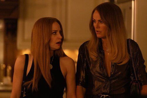 Jaime Ray Newman y Malin Akerman aparecen en una foto promocional del episodio 'Estrella fugaz' de 'The Hunting Wives'.