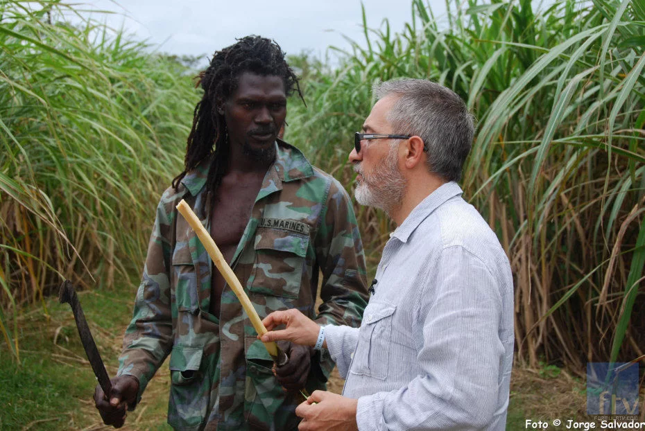 Sardá hablando con un jamaicano en su visita a Jamaica en 'Dutifri'.