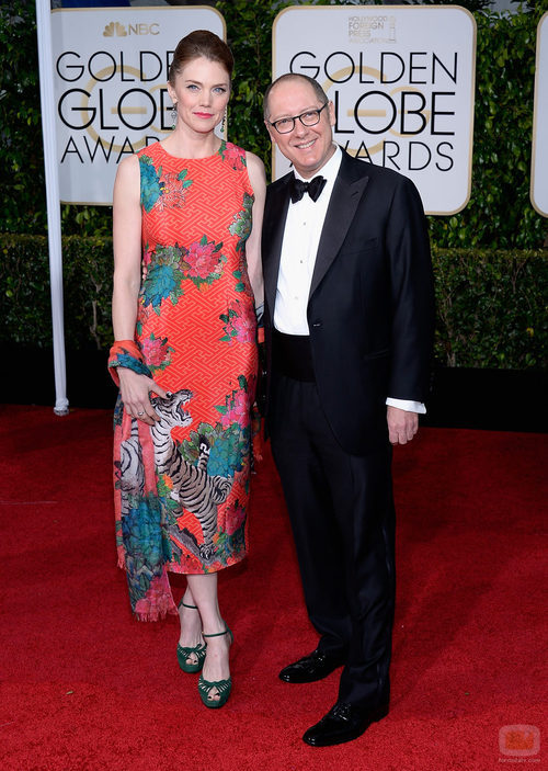 El actor James Spader y su pareja Leslie Stefanson en la alfombra roja de los Globos de Oro 2015 en Los Ángeles.