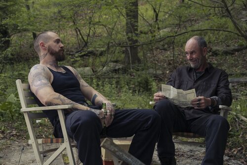Sam Keeley y Jamie McShane aparecen en una foto del capítulo 'Declaraciones Familiares' de la serie 'Task', la serie de televisión de HBO.