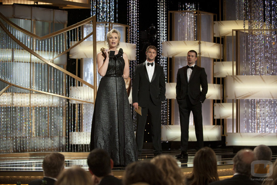 Jane Lynch actriz 'Glee' recoge el galardón en la 68ª edición de los Golden Globes Awards.