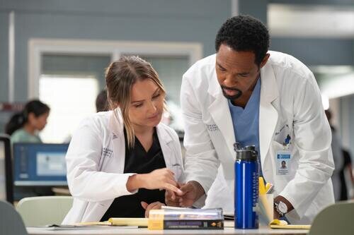 Camilla Luddington y Jason George aparecen en una foto promocional del episodio 21x04 de la serie 'Grey's Anatomy'.