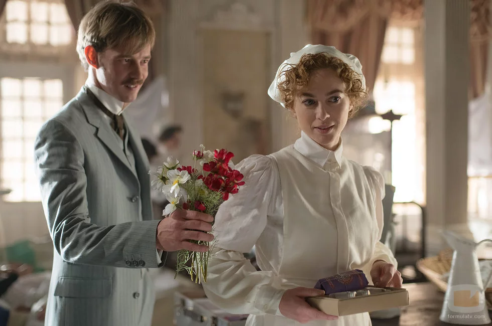 Javier Alarcón (Eloy Azorín) reglándose rosas a Laura (Marta Hazas).