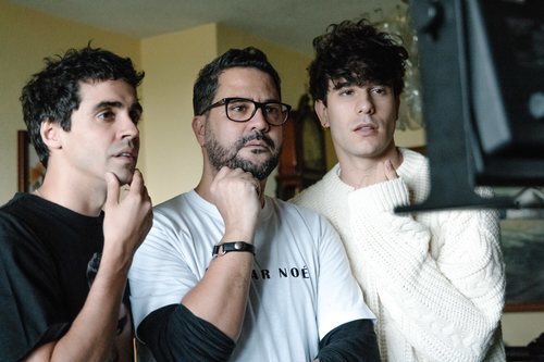 Los Javis y Benja de la Rosa en el set de rodaje de 'Terror y Feria'
