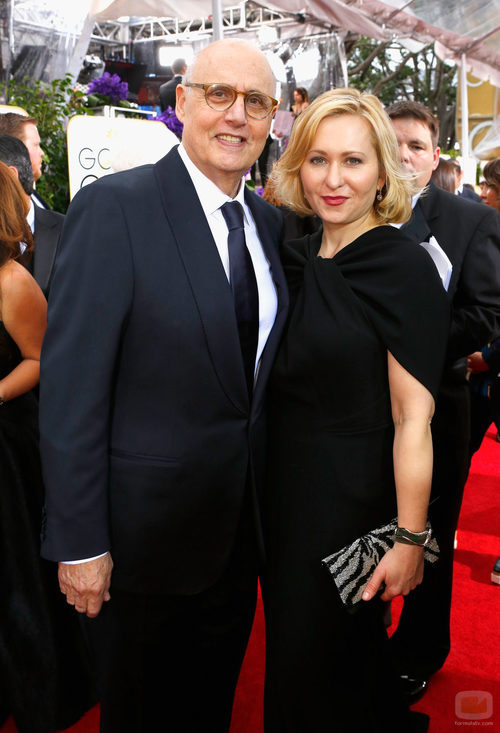 El actor Jeffrey Tambor ('Transparent') y su mujer Kasia Ostlun en la alfombra roja de los Globos de Oro 2015.