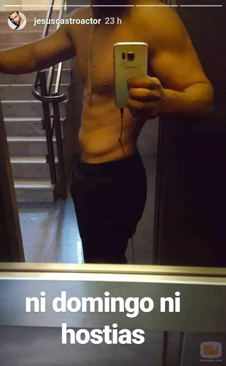 Jesús Castro compartió en su stories de Instagram una imagen después de entrenar de su torso desnudo, en la que además destaca un sospechoso bulto.