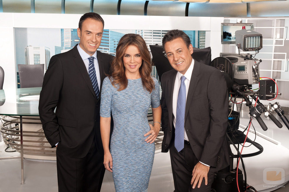 Los presentadores de la edición de fin de semana de Informativos Telecinco en el balance anual de Mediaset España.