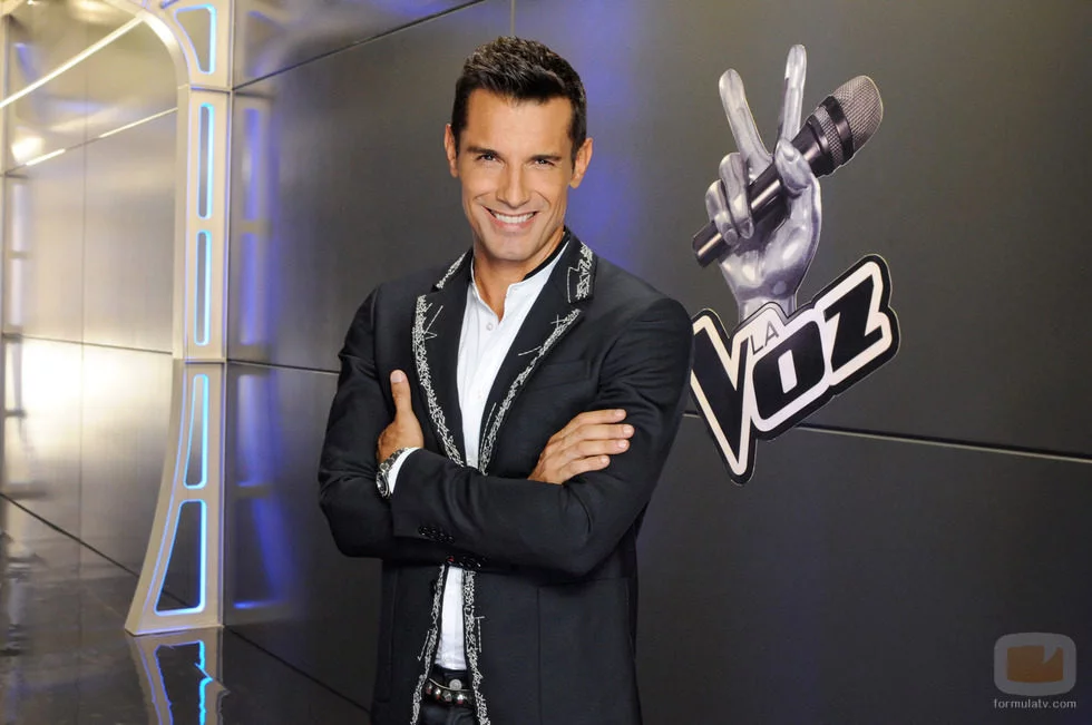 Jesús Vázquez posa con el logo de 'La Voz'