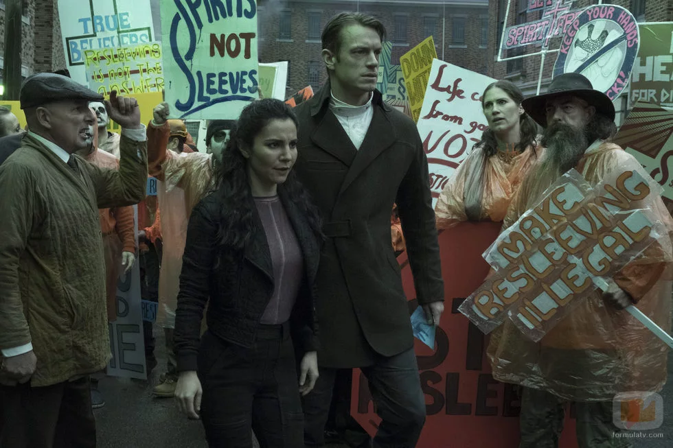 Joel Kinnaman y Martha Higareda en la serie de Netflix 'Altered Carbon'