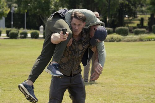 El actor John Cena (El Pacificador / Christopher Smith) en una escena del episodio 'Volver a la Sutura' de la serie 'Peacemaker'.