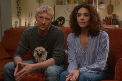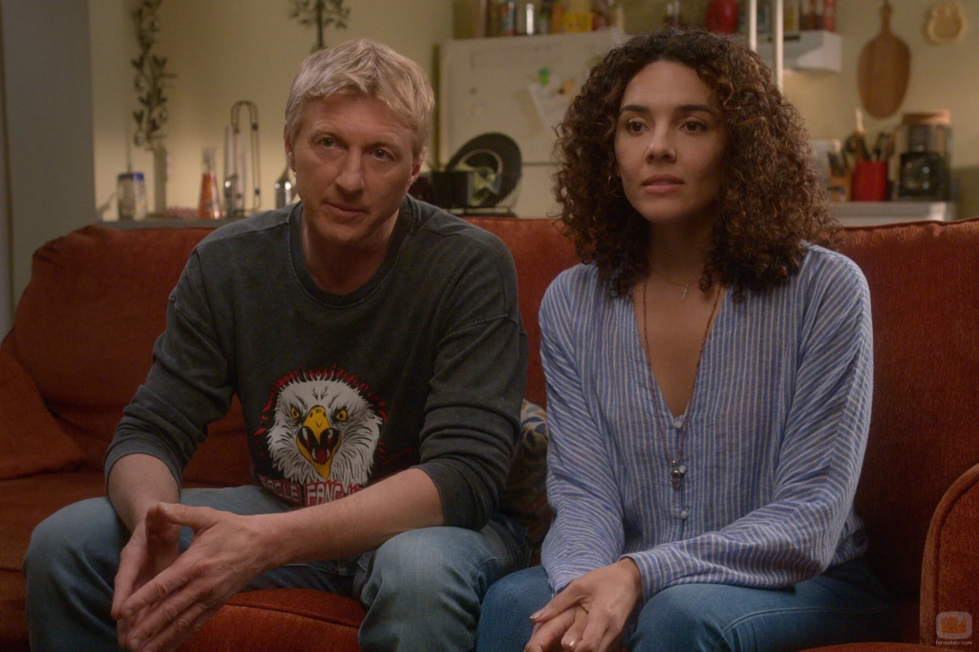 Los personajes de William Zabka y Vanessa Rubio conversan durante uno de los episodios de la cuarta temporada de 'Cobra Kai'.