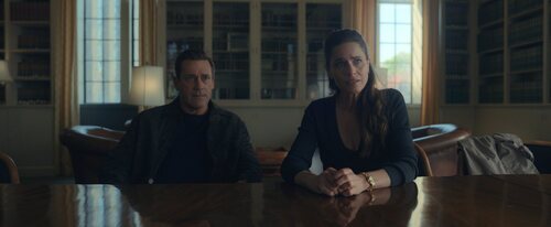 Amanda Peet y Jon Hamm aparecen en una escena promocional del capítulo 'Este turista tiene huevos' de 'Your Friends and Neighbors'.