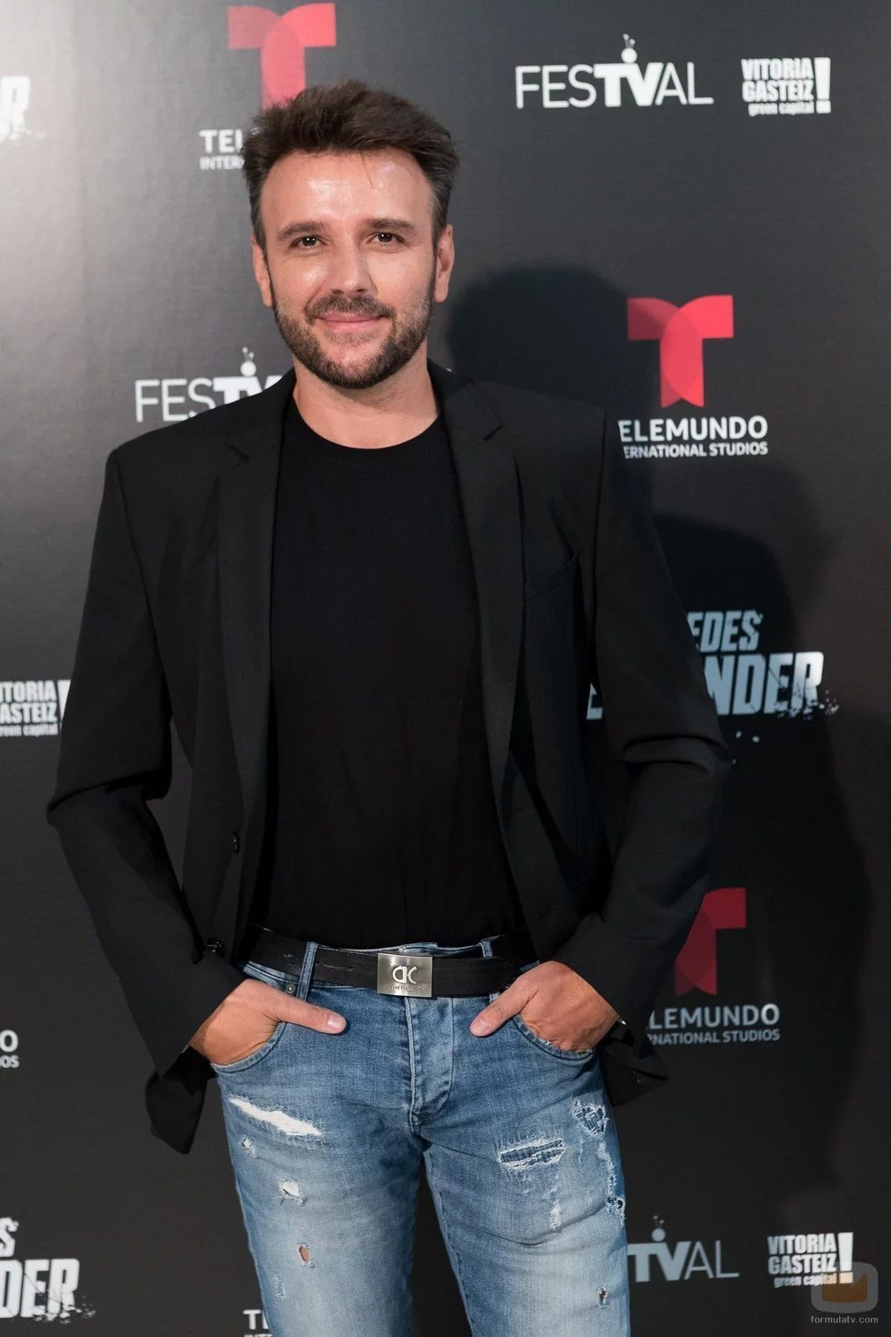 Jordi Planes posando en el photocall de 'No te puedes esconder' durante la presentación de la serie en el FesTVal de Vitoria.