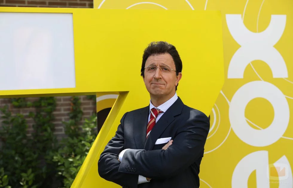 Jordi Ríos caracterizado de Matías Prats en la rueda de prensa de 'Homo Zapping'