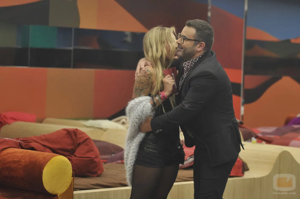 Jorge Javier Vázquez abraza a Paula, su favorita, durante la prueba de inmunidad de la gala 12 de 'Gran Hermano 15'.