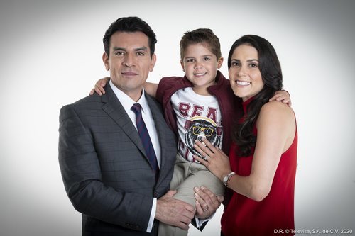 Imagen de la familia al completo de 'Te doy la vida', la telenovela latina que se emite en Nova sobre un niño lucha contra la leucemia junto a sus padres adoptivos.
