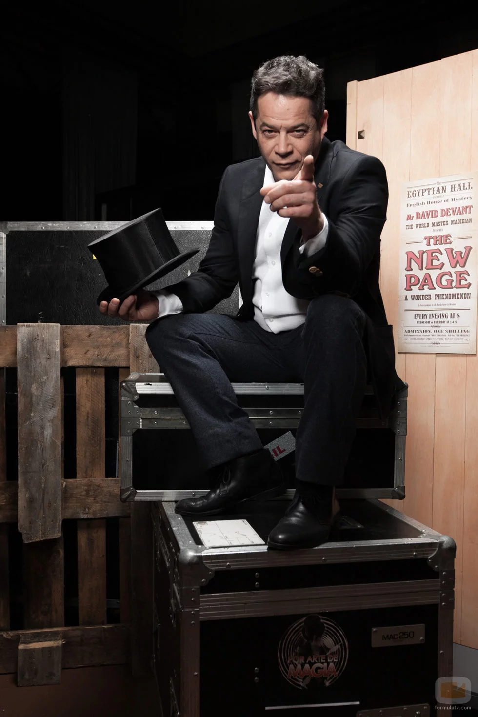 Jorge Sanz sujeta una chistera con la que intentará hacer trucos de magia.