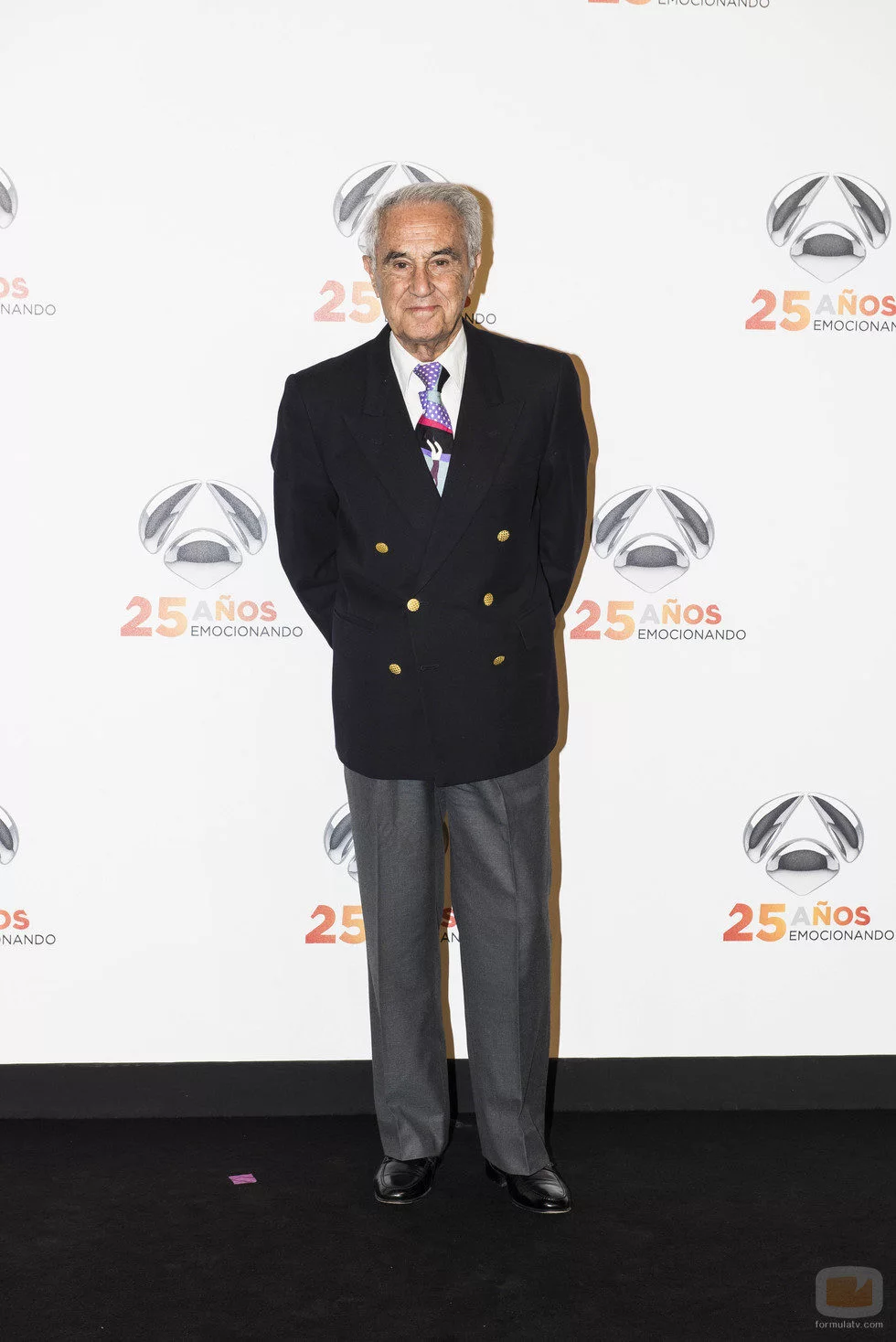El mítico presentador de las Noticias, uno de los rostros más destacados de la historia del canal, en el photocall de la fiesta.
