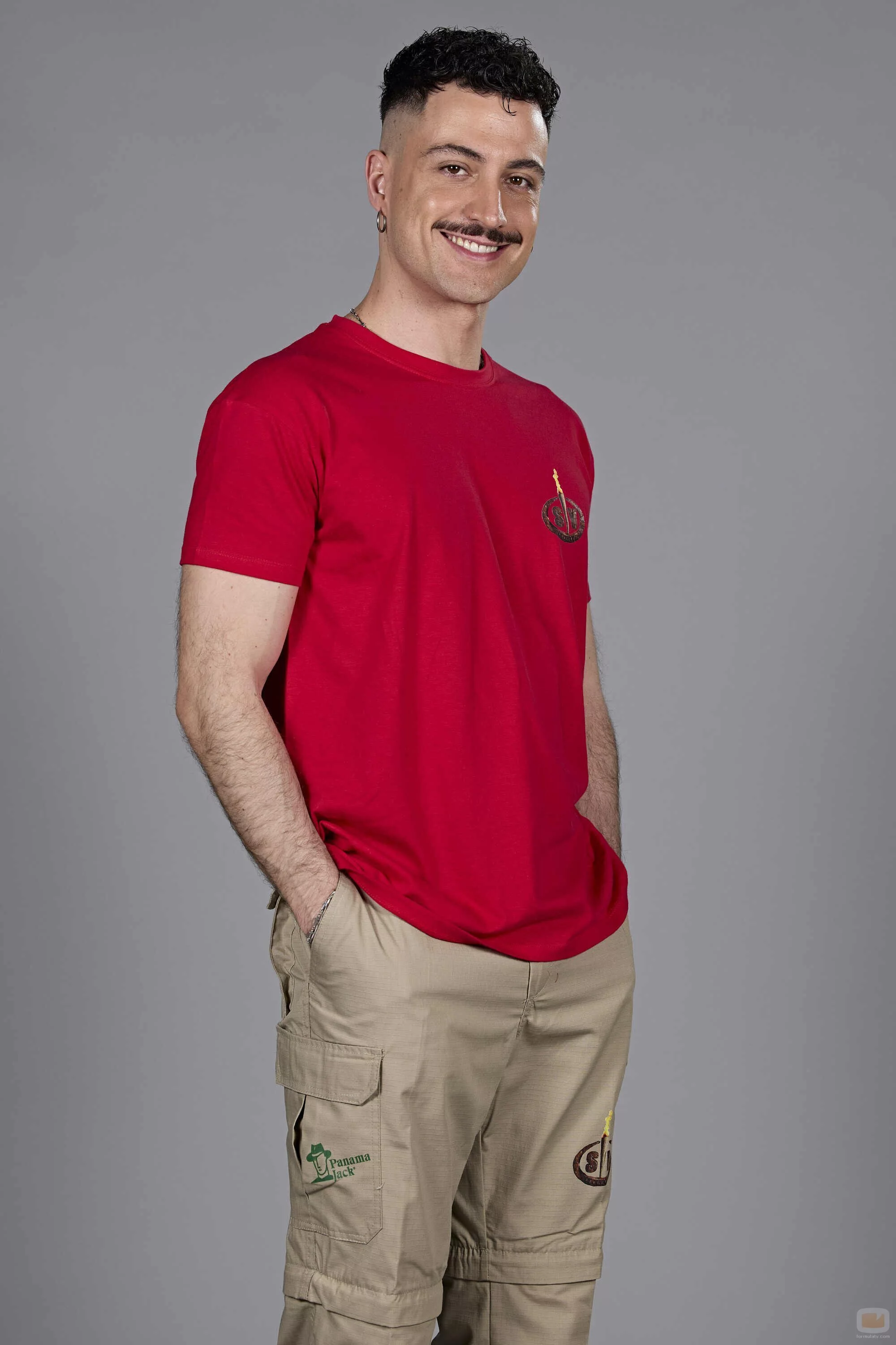 De ganar 'Maestros de la costura' a convertirse en uno de los concursantes de 'Supervivientes 2025': El diseñador Joshua Velázquez posa con la camiseta roja típica del reality de aventura.