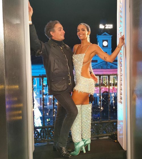 Cristina Pedroche posa junto a su asesor y estilista José Fernández Pacheco, Josie, en el balcón de Antena 3 para las Campanadas.
