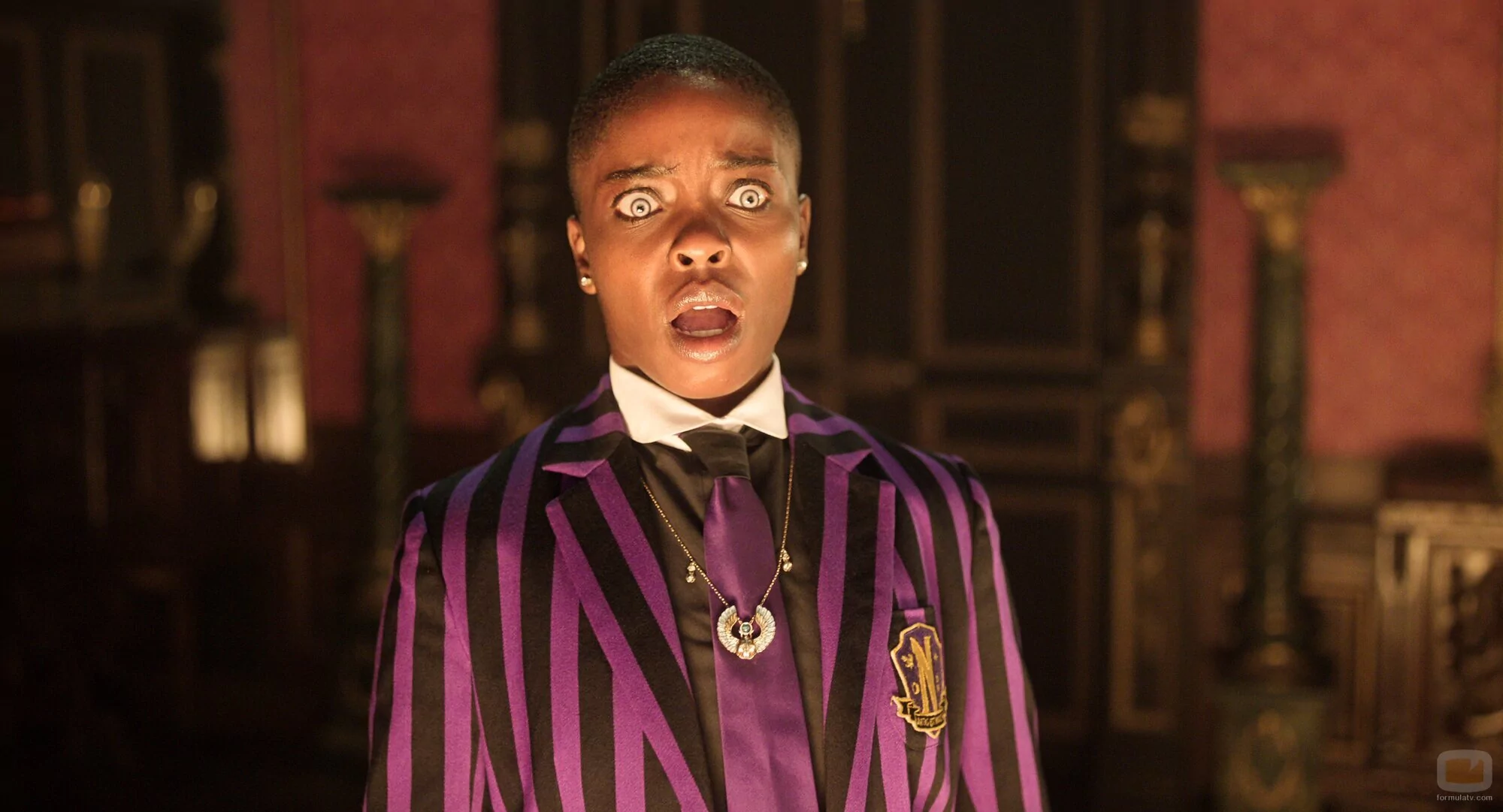 La intérprete Joy Sunday en una escena promocional del episodio 'Consígueme dinero... triste' de la serie 'Wednesday'.