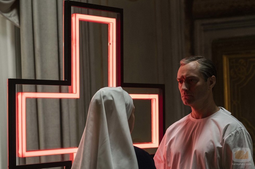 Jude Law junto a un crucifijo en 'The New Pope'