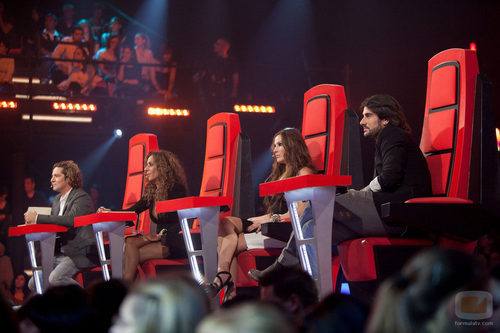 Malú, Rosario, Bisbal y Melendi en la primera gala en directo de 'La Voz'