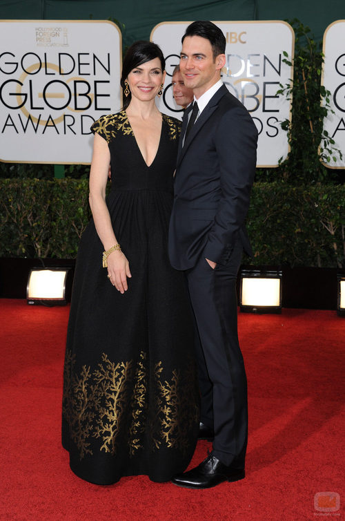 La protagonista de 'The Good Wife', Julianna Margulies, junto a su marido Keith Lieberthal en la alfombra roja de los Globos de Oro 2014.