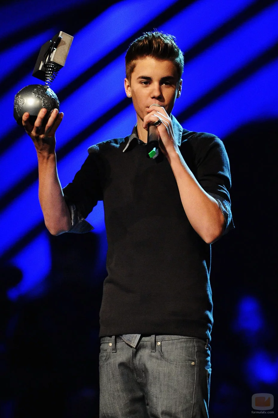 Justin Bieber recoge su premio MTV Europe Music Awards 2011 al mejor cantante masculino.