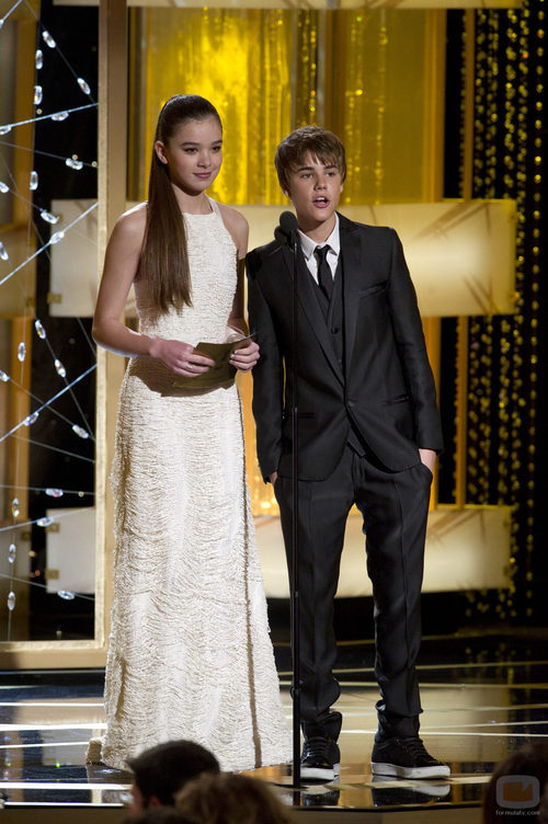 Justin Bieber y Hailee Steinfeld presentando la gala