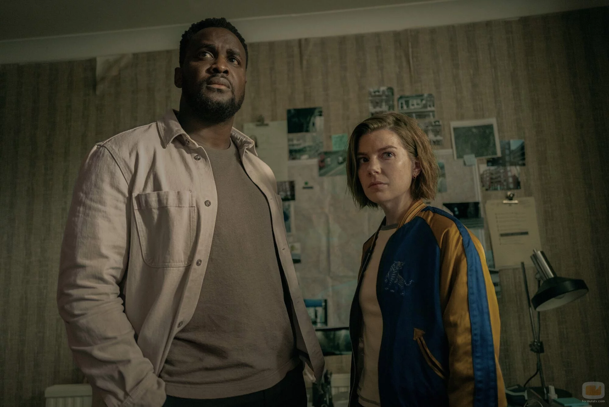 Kadiff Kirwan y Aimee-Ffion Edwards aparecen en una imagen del capítulo 'Negociando con tigres' de 'Slow Horses'.